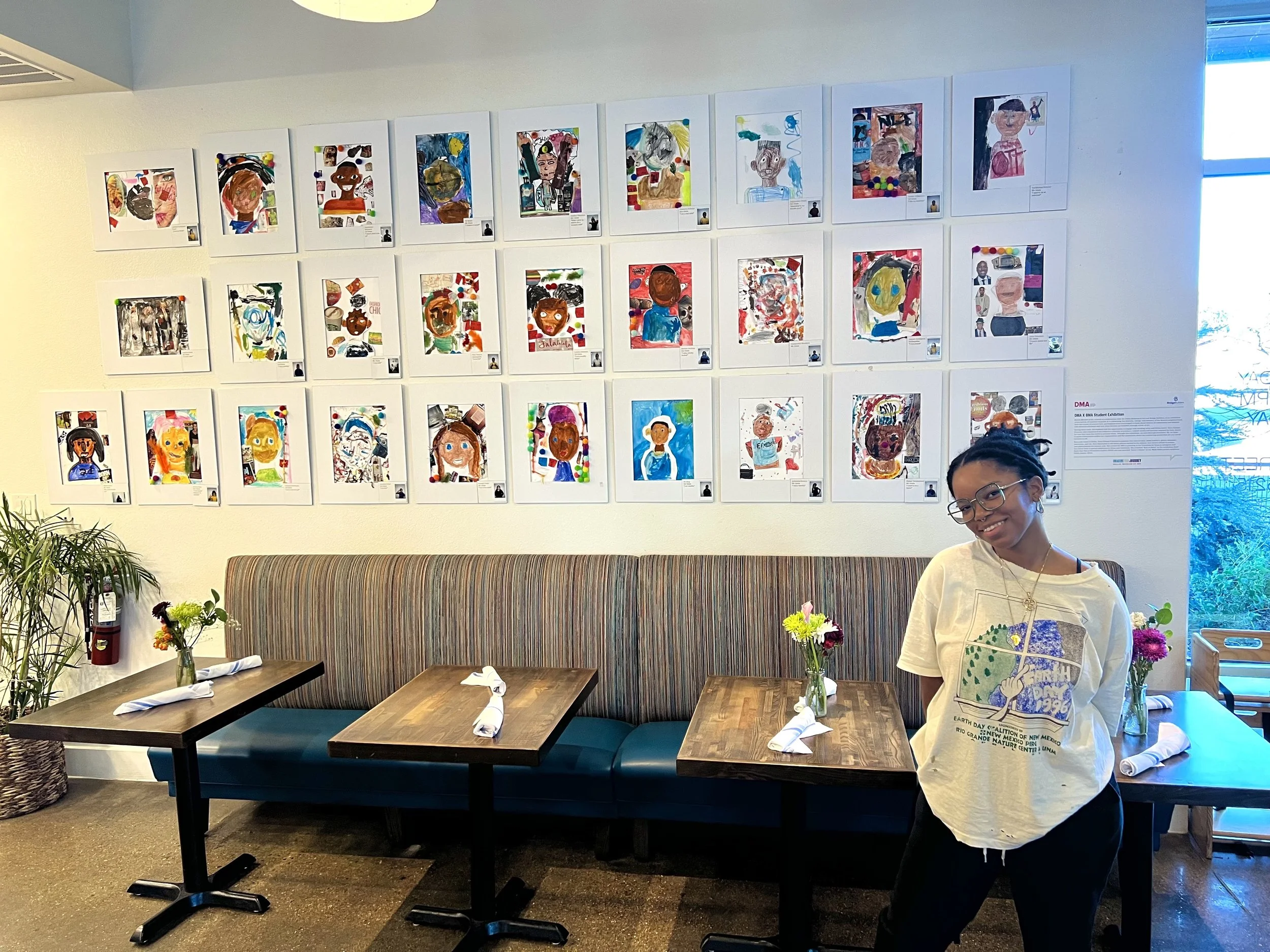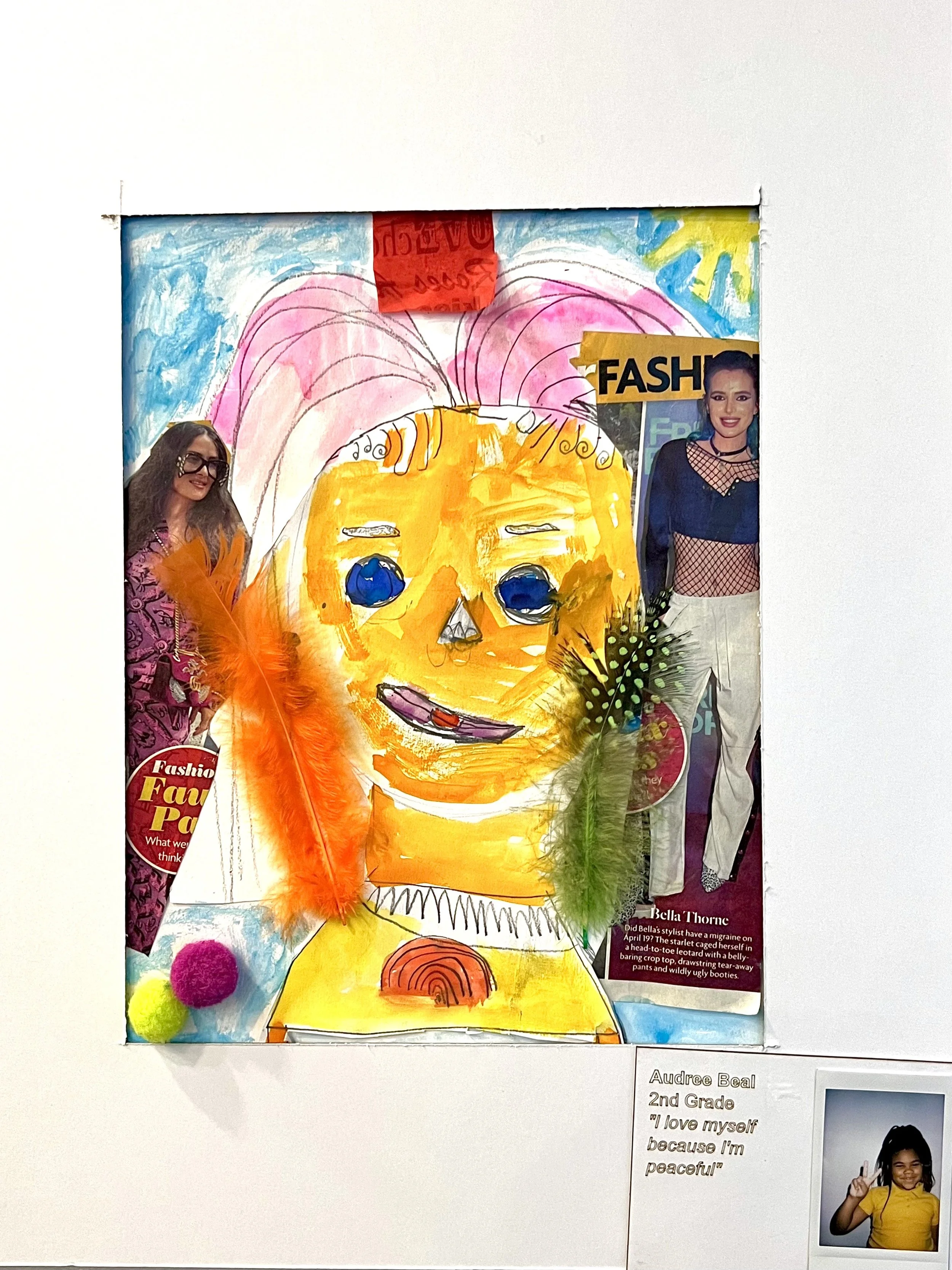 The workshop was focused on self identity. The students were encouraged to use painting and drawing techniques with various materials including watercolor, color pencil, and markers. Students utilized collage elements and included feathers, pom poms and magazine clippings in their work. Their picture was taken with a polaroid camera and include with their artwork in an art exhibition featured at Bonton Farms.